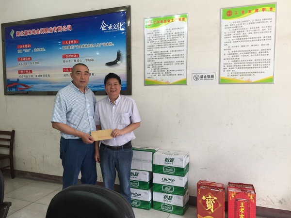今年入伏以來,我省出現(xiàn)持續(xù)晴熱高溫天氣,為進一步做好防暑降溫工作,根據(jù)集團年度工作計劃的統(tǒng)一安排,7月19日,湖北農(nóng)資控股集團總經(jīng)理彭光明、工會主席魏佳建一行專程赴潛江富來地公司進行工作調(diào)研,看望慰問生產(chǎn)一線員工,正式啟動“夏季送清涼”活動。