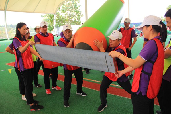 拓展活動還設置了“眾志成城”、“輝煌之戰(zhàn)”、“勇往直前”、“書寫新篇”、“拔河比賽”等十余個項目,不僅考驗參賽選手們的運動水平,也更加考驗大家的團隊協(xié)作能力。富含趣味性的運動項目,使比賽既緊張激烈,又伴隨著歡聲笑語,讓整個比賽氛圍更加輕松和諧,為各單位、各部門之間交流協(xié)作搭建了橋梁。根據(jù)各項目積分累計,“輝煌”隊榮獲拓展比賽綜合第一名。