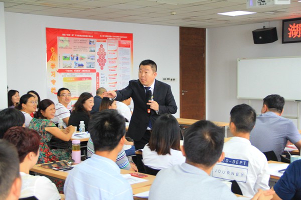 此次培訓特邀清華大學、北京大學等高??偛冒嗵仄钢v師、營銷咨詢師高海友授課。高老師采取分組積分形式,從選人與培養(yǎng)、培養(yǎng)市場精英、提升營銷技能、打造管理團隊、成長式激勵等五個方面詳細講授了如何打造高效團隊的舉措。高老師授課方式幽默風趣、內(nèi)涵深刻,運用情景式案例,實戰(zhàn)型解答,以真實案例說明實際問題,并提出營銷人員需要做到明道生慧,即明人、明人性、明專業(yè)、明行業(yè)、明競品、明客戶、明關系、明流程、明時勢、明根本。此次培訓為期一天,在整個培訓中,講師穿插一系列的現(xiàn)場互動,形式豐富多彩,員工積極參與受益匪淺,整個課堂充滿活力。