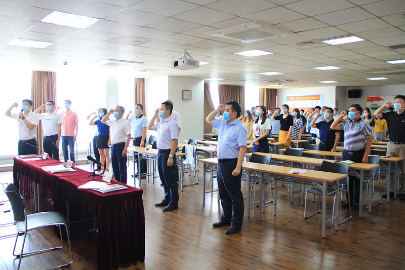 會議在雄壯的國歌聲中拉開帷幕。新老黨員佩戴黨徽、高舉右拳,面對黨旗進行了入黨宣誓,重溫了入黨誓詞。